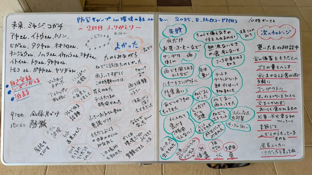 環境の杜防災キャンプふりかえり(2025年8月16日〜17日)